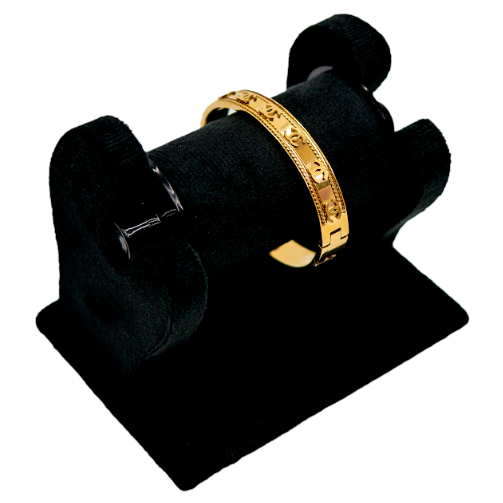 • Product Type: Women’s Bracelet • Material: Gold-plated alloy • Finish: High-gloss polish • Design Style: Repeating embossed pattern • Band Width: Medium • Clasp Type: Secure lock clasp • Weight: Medium-light • Comfort: Smooth inner surface • Suitable For: Daily wear, office wear, casual outings • Colour: Gold tone • Care Instructions: Keep away from water, perfumes and direct chemicals