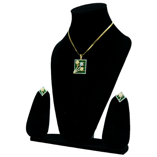 Jewellery Type: Pendant necklace with earrings Design Style: Minimal & modern Stone Detailing: Green stones with fine accents Finish: Smooth polished finish Occasion: Daily wear, office wear, light parties Set Includes: 1 Pendant Necklace + 1 Pair of Earrings Ideal For: Women & girls