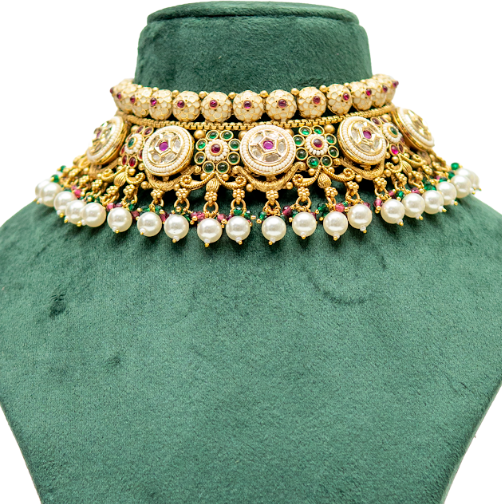 UffbyIsha Antique Temple Pearl Choker Necklace Set