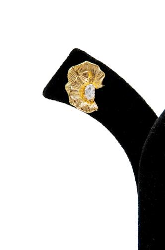 Bring a soft, sophisticated glow to your look with these stunning Golden Petal Textured Stone Stud Earrings. Crafted with a uniquely molded petal design, the earrings feature fine gold-toned detailing that gives them a luxurious handcrafted appearance. At the center sits a sparkling oval-cut stone that elevates the entire design with just the right amount of shine. Lightweight and eye-catching, these studs pair effortlessly with western wear, Indo-western outfits, casual dresses, sarees, and even festive looks. Whether you're dressing for a brunch, a party, or a simple day out, these earrings add an elegant statement without being overpowering.
