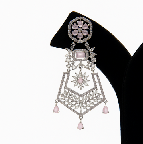 Product Type: Long Drop Earrings Material: High-quality alloy with stone embellishments Stone Color: Soft pink with clear accents Finish: Silver-toned polish Style: Elegant, statement jewellery Occasion: Wedding, party wear, festive events Closure Type: Push back Care Instructions: Store in a dry place and avoid contact with water or perfume