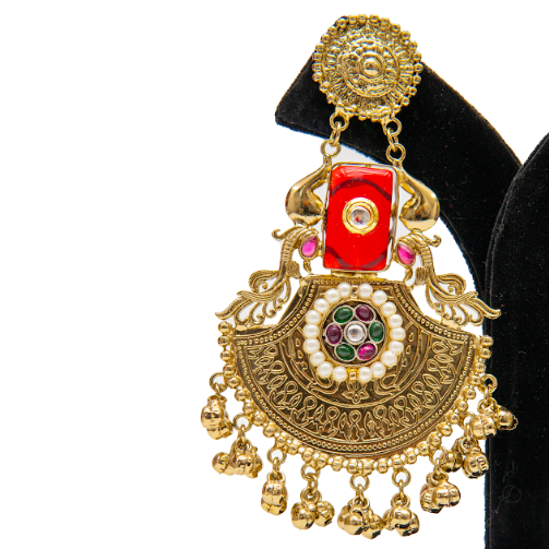 Temple-Inspired Gold Finish Traditional Earrings for Women with Jhumka Drop