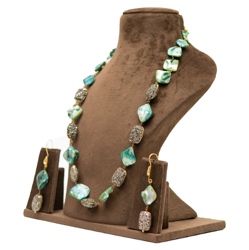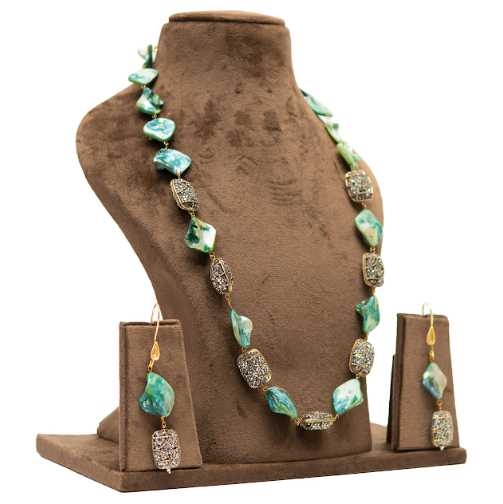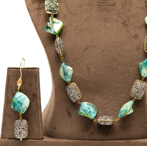Aqua Green Stone Fusion Long Necklace Set
