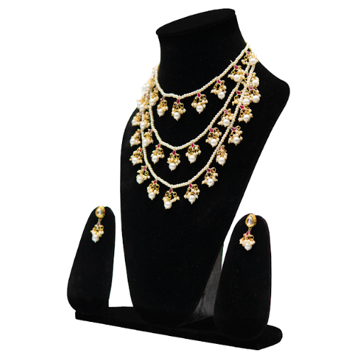 Brand: uffbyisha Jewellery Type: Long Necklace Set Set Includes: Layered Necklace & Matching Earrings Finish: Gold Polish Material: Pearls & Metal Alloy Design Style: Traditional / Statement Jewellery Occasion: Wedding Wear, Festive Wear, Ethnic Styling Closure Type: Adjustable thread Care Instructions: Avoid contact with water, perfumes, and chemicals. Store in a soft pouch after use.