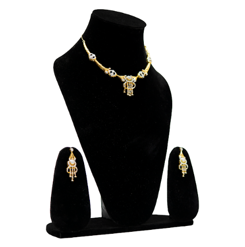 Brand: uffbyisha Jewellery Type: Pendant Necklace Set Set Includes: Necklace & Matching Earrings Finish: Gold Polish Design Style: Contemporary Traditional Occasion: Festive Wear, Traditional Functions, Ethnic Wear Closure Type: Adjustable chain Care Instructions: Keep away from water, perfumes, and chemicals. Store in a dry, soft pouch.
