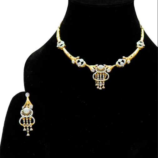 Uffbyisha Gold Finish Pendant Necklace Set with Contemporary Motif