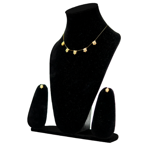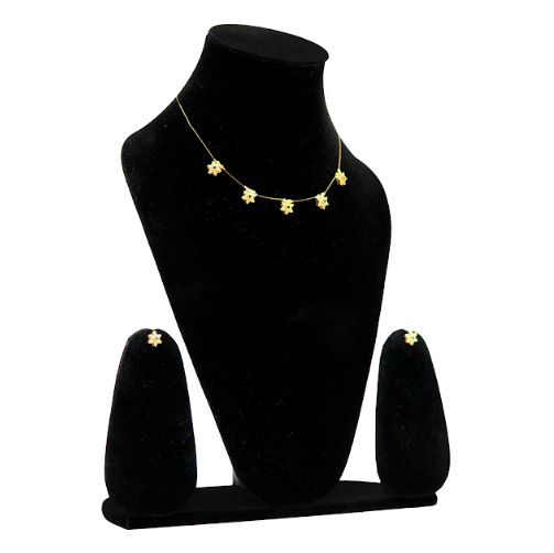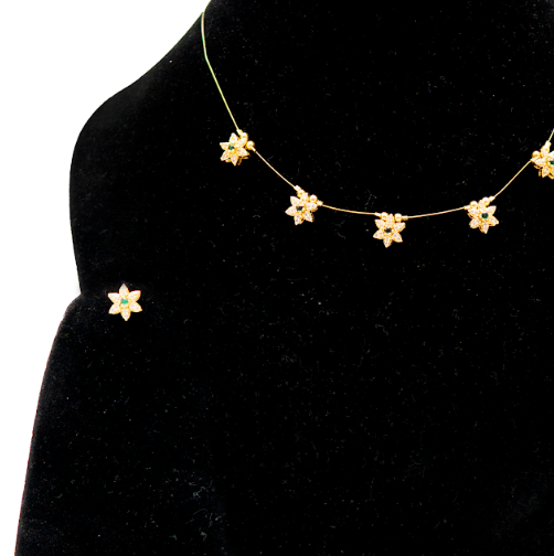 Elevate your everyday style with this floral minimal necklace set from UffbyIsha. Designed with tiny flower motifs arranged gracefully along a fine chain, this piece offers subtle charm and effortless elegance. Its lightweight design makes it perfect for women who love refined jewellery without heaviness. The matching stud earrings complement the necklace beautifully, making this set ideal for daily wear, festive gatherings, and fusion outfits. Simple yet eye-catching, this necklace set blends modern minimalism with traditional floral inspiration.