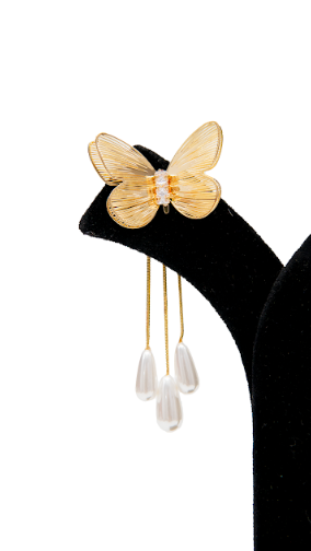 Jewellery Type: Drop Earrings Design: Butterfly with pearl hanging Material: Alloy with gold-tone finish Stone Type: Pearl beads & crystal accent Style: Elegant / Party Wear Occasion: Party, Wedding, Festive wear Closure Type: Push back Comfort: Lightweight & skin-friendly