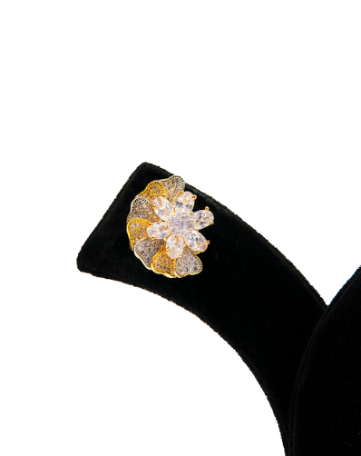 These beautifully crafted stone stud earrings feature a graceful floral design highlighted with sparkling stones and a rich gold-tone finish. The layered petal pattern adds depth and brilliance, making these earrings a perfect blend of elegance and modern style. Designed for comfort and everyday sophistication, these stud earrings for women suit both festive occasions and party wear. Pair them with sarees, dresses, or ethnic outfits to add a refined sparkle to your look.
