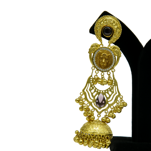 Temple-Inspired Gold Finish Traditional Earrings for Women with Jhumka Drop