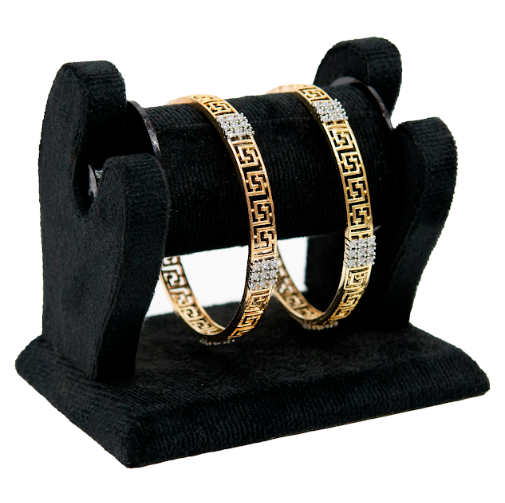 Product Name: Greek Pattern Gold-Plated CZ Kada Bangles Material: Premium gold-plated alloy Stone Type: Sparkling CZ (Cubic Zirconia) Design Style: Greek/maze pattern Color: Gold with white stone accents Size: Standard closed kada size (custom size available if needed) Weight: Lightweight & easy to wear Finish: High-polish gold plating Ideal For: Women & girls Occasions: Festivals, weddings, parties, daily wear